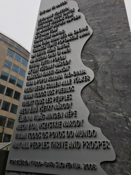 Republika Slovenija je namreč leta 2008 ob zaključku predsedovanja Evropski uniji podarila mestu Bruselj spomenik, na katerem je zapisana Prešernova Zdravljica v vseh uradnih jezikih EU. Spomenik stoji na prestižnem mestu tik pred sedežem Evropske komisije.