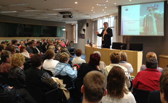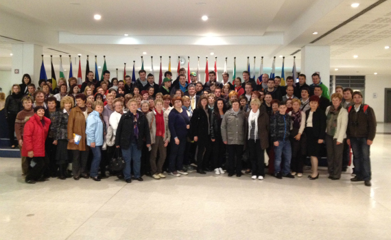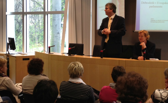 Evropski parlament sta na povabilo dr. Milana Zvera danes obiskali dve skupini iz Slovenije. Mladi iz podeželja in kmečke ženske so prisluhnili predavanju o delovanju evropskih inštitucij ter si ogledali dvorano, v kateri enkrat mesečno potekajo plenarna zasedanja parlamenta.