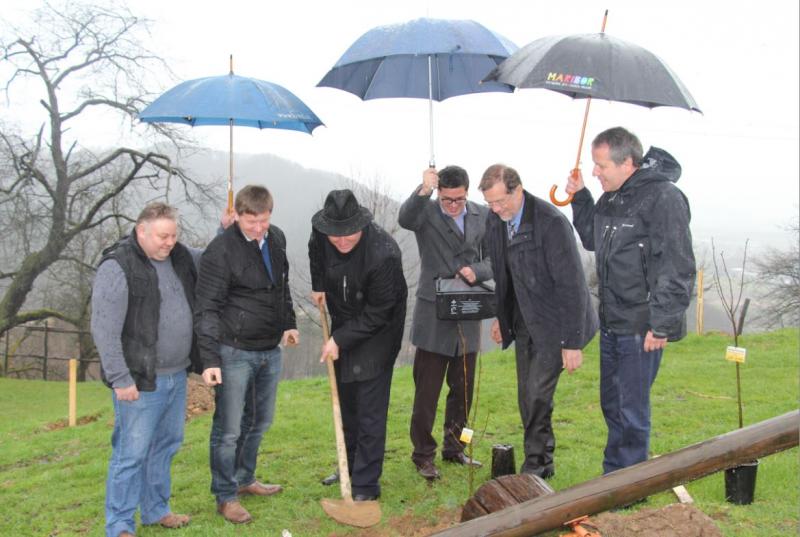 Po koncu novinarske konference je dr. Milan Zver skupaj s kolegi evroposlanci posadil sadiko lipe.