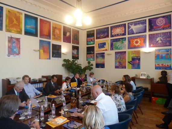 Poslanci so se zjutraj sestali s predstavniki Narodnega doma Maribor, med drugim z direktorjem Vladimirjem Rukavino, s predstavniki multimedijskega centra Kibla, predstavniki Festivala Maribor in Festivala Lent. Vse te organizacije delujejo tudi s pomočje evropskih sredstev in z mnogimi projekti sodelujejo z EPK.